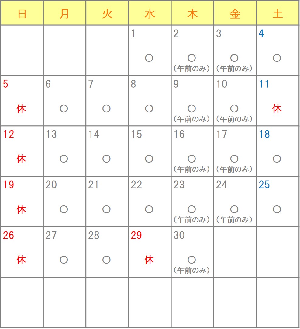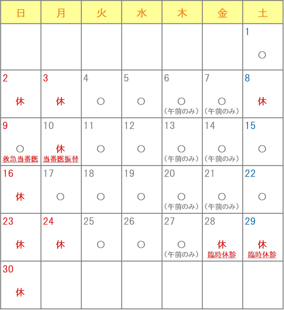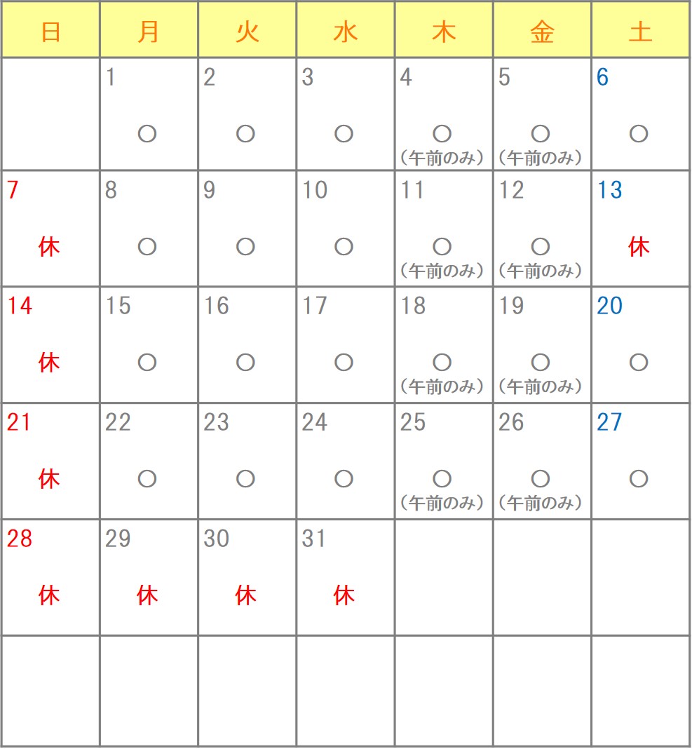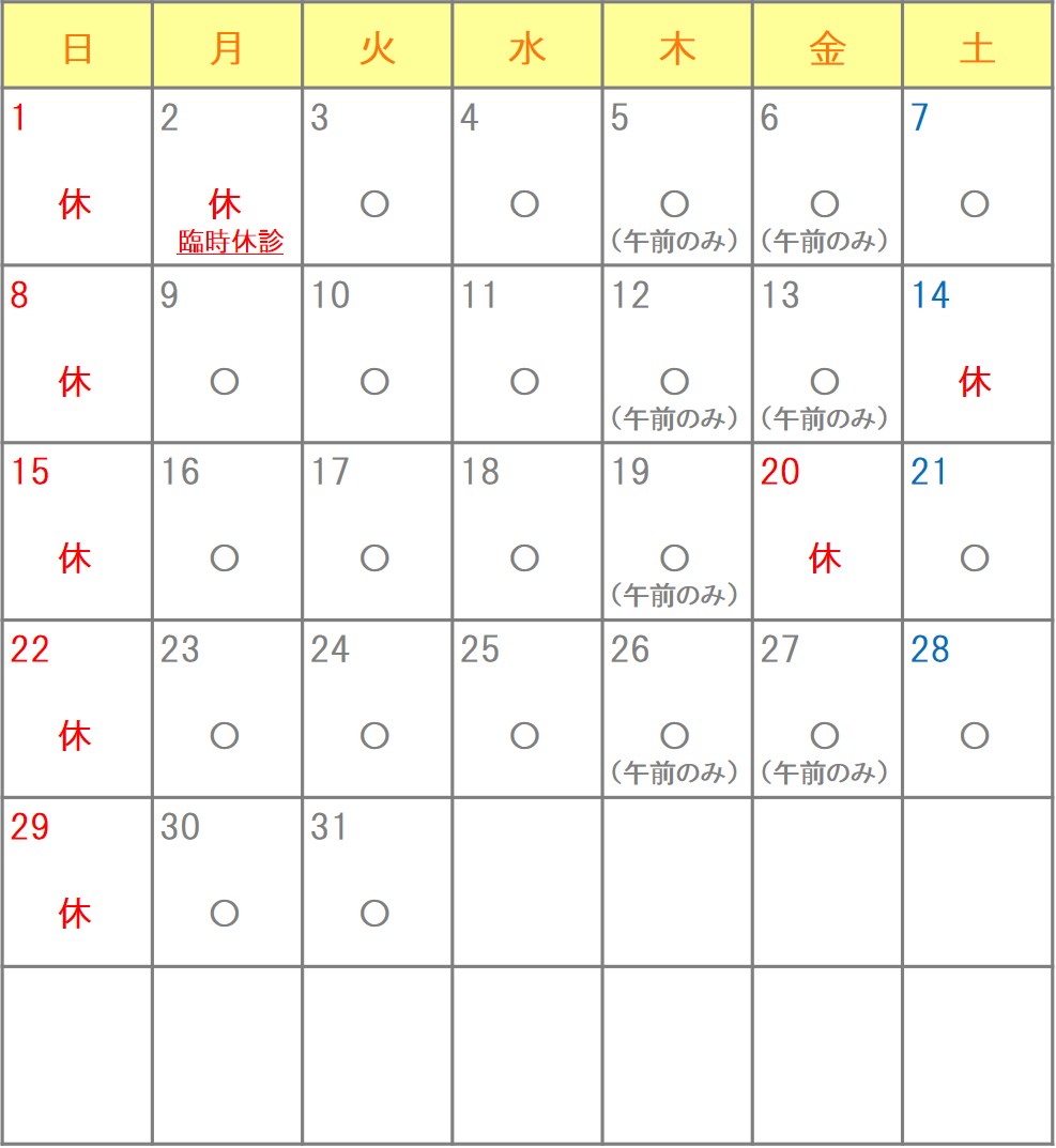 日曜・祝祭日は休診となります。*毎月第2土曜は休診となります。