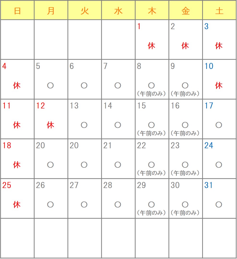 日曜・祝祭日は休診となります。*毎月第2土曜は休診となります。